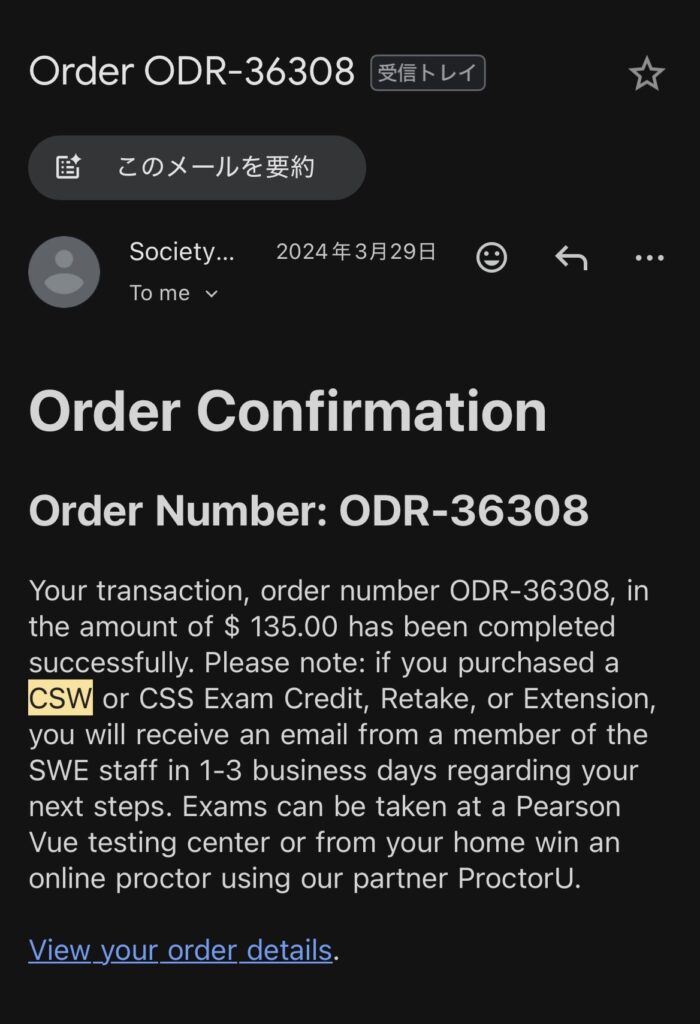 筆者が受験した際は、申込直後に会場をすぐに指定できないケースがありましたが、SWEにメールで問い合わせたところ1日以内に返信があり、スムーズに対応してもらえました。英語でのやり取りになりますが、事務局の対応は丁寧で、問題なく手続きを進められます。困ったことがあれば遠慮なく問い合わせることをおすすめします。